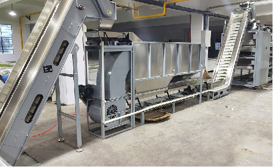 機組組成:本機組由進料輸送機、勻葉振動槽、風(fēng)選機、出料輸送機、機組集成控制系統(tǒng)組成。